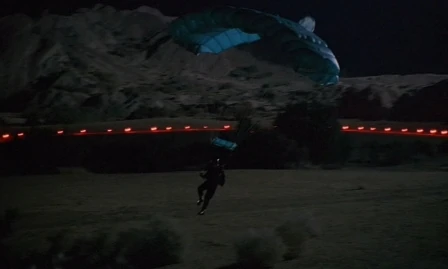 Am Boden startete sie ein Signalfeuer und zerstörte den Fallschirm und ihre Klamotten. Bevor sie von einem von Gaines' Männern abgeholt wurde, vergrub sie Belkins Ausweis zusammen mit einem Zielsuchgerät im Sand. Dann wurde sie zu Gaines' Gebäude gebracht, wo er ihr ihr Geld zeigte. Sie sagte ihm, er werde die ID bald bekommen.