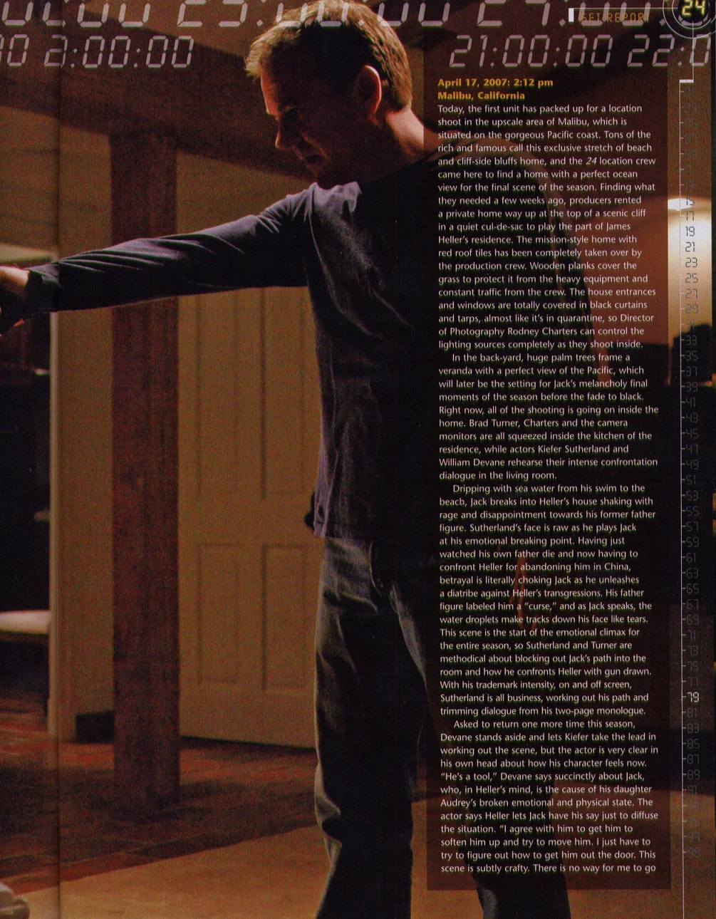 An article exploring the future of 24, with interviews with Kiefer Sutherland and Howard Gordon about the flaws of Season 6 and what to expect in the future. A short article with interesting information.