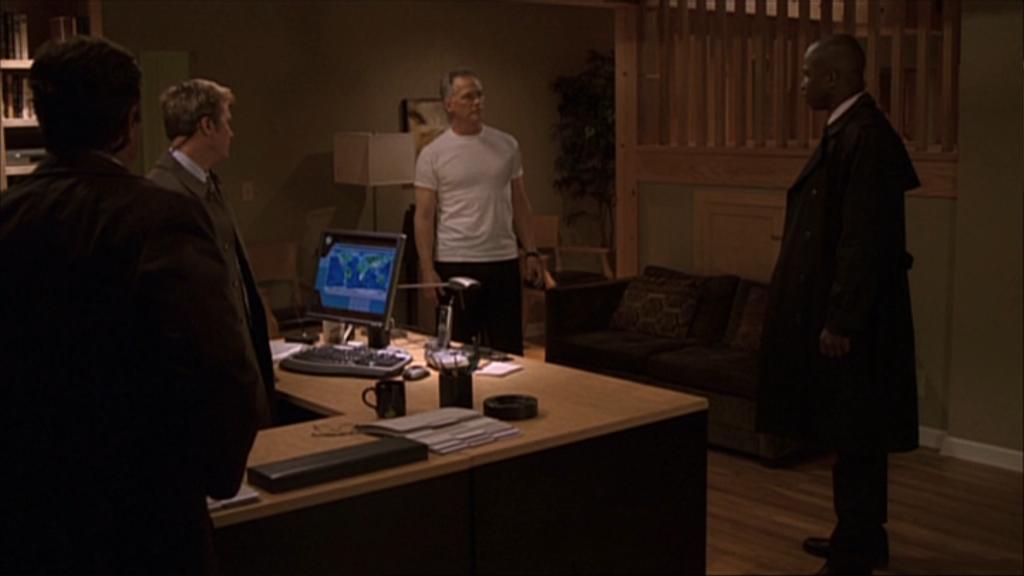 After Karen fired Bill, he went home. Several FBI agents searched his house. Bill received a call from Karen telling him to prevent the exchange of Josh Bauer and the FB subcircuit board.
