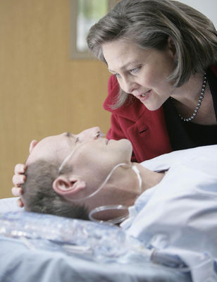 When Jack Bauer called the President, he told her that her husband had been shot in the chest and was on his way to the hospital. She told Bill and Ethan that she wanted to visit Henry at the hospital. Bill offered to take charge of her security and transport her there since they didn't know who they could trust. Taylor effectively replaced her previous head of security, Ted Hovis, with Bill. When they arrived at the hospital, Taylor learned that her husband needed surgery. While she visited him, she told him that he was right all along about Roger's death. The President wanted her daughter Olivia to come visit her father in case he didn't make it. Bill told her that he knew someone trustworthy that could pick her up.