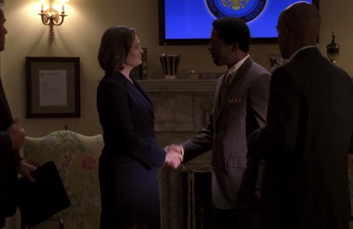 Taylor later won the general election, defeating Daniels and becoming the first female President of the United States. She chose Ethan Kanin as White House Chief of Staff, Joe Stevens as Secretary of State, Tim Woods as Secretary of Homeland Security and with Hayworth as her Vice President.