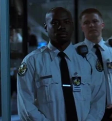 At 2:00am, this guard was among those watching over Jack Bauer. When Nadia refused to let Jack accompany Mike Doyle and Field Unit Bravo to Bloomfield, Jack eyed both guards, but Nadia insisted that Jack make no move against them. Later, when the CTU Los Angeles building was invaded by Cheng Zhi's mercenaries, the guard opened Jack's cell when he heard automatic gunfire and couldn't contact anyone else. Jack and Benson spoke briefly, but the guard was killed by shots from one of Zhou Yong's men. Jack used Benson's weapon to kill the attacker, and then moved to other parts of the building, bringing down a number of other mercenaries.