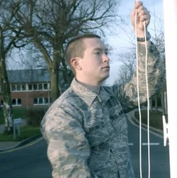 After a friendly fire incident in Afghanistan killed four U.S. and British airmen, Brown lowered the base's American flag to half-mast, while other airmen, including Garcia, stood to attention and saluted. ("Day 9: 12:00pm-1:00pm")