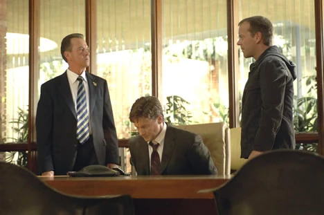 Logan and Jack Bauer question Walt Cummings.