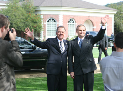 President Logan greets the press with Russian President Suvarov.