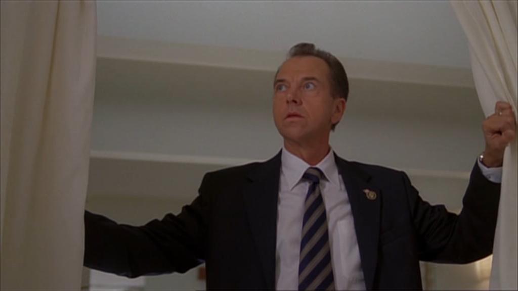 Bill Buchanan briefed Logan about the situation, and Logan stressed the fact that he wouldn't back off the treaty. He urged Buchanan to have the matter resolved. When Bill tried to negotiate with Beresch, he ended up killing a hostage in front of the camera, and Logan watched it in horror.