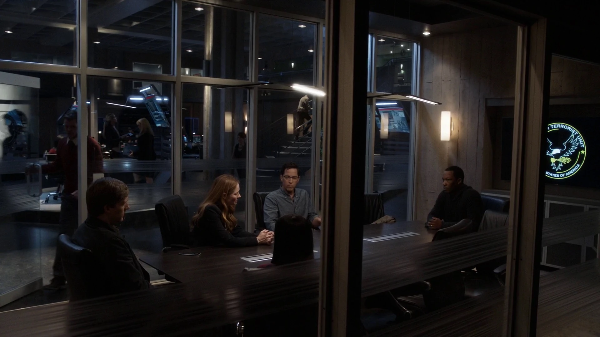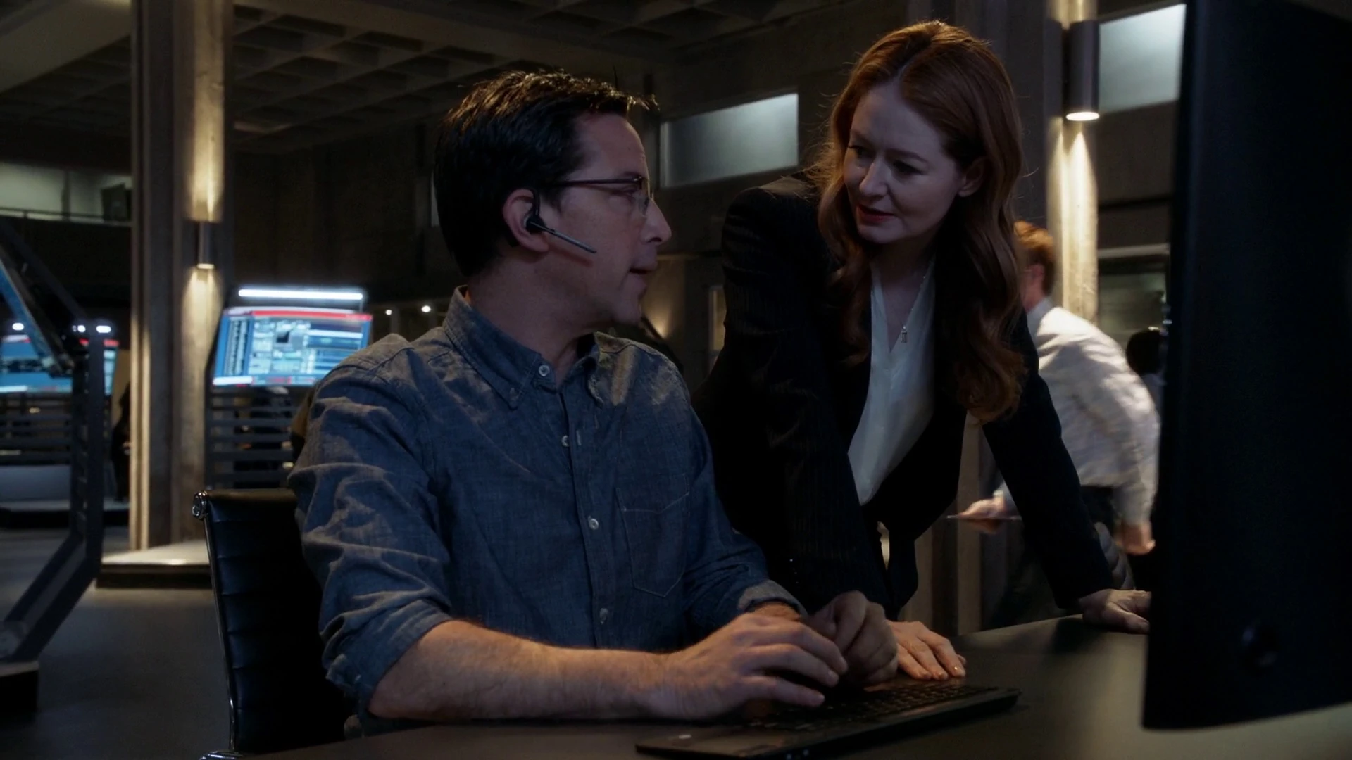 Mullins orders Nilaa into Interrogation 4 for further questioning. Rebecca Ingram asks to take it over. Mullins prefers she be with him at the DNI briefing because of her expertise on Bin-Khalid. She agrees, and then goes to talk to Andy, asking him to pull the files on the Alexandria attacks.