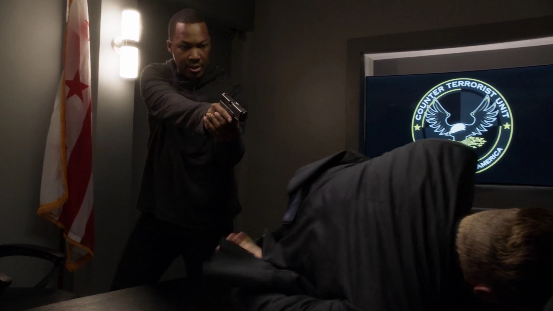 Andy Shalowitz gets the specification of the weapons, and sends them to Carter, who is being debriefed about Grimes. Carter sees the specifications arrive on his phone, then grabs Wilkes and holds him at gunpoint.
