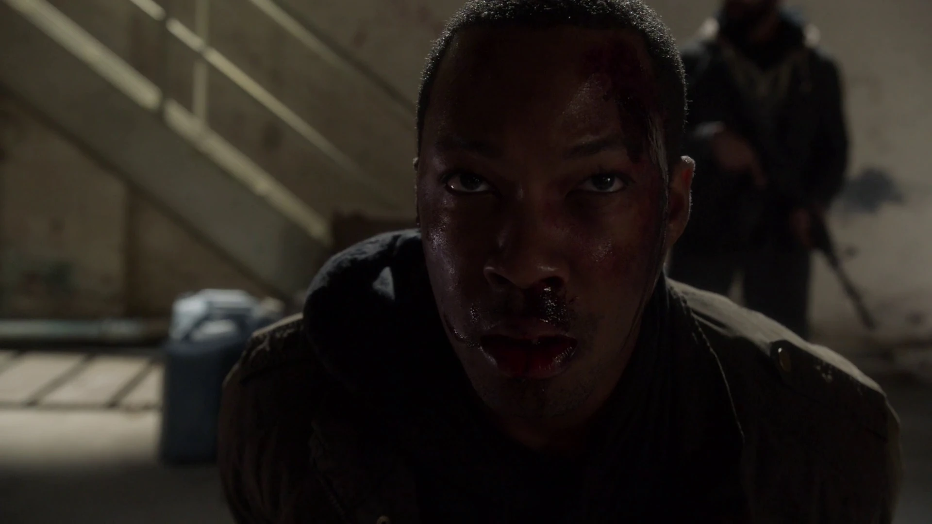 In the ruins of the building, Eric picks himself up and inspects Isaac's wound. He then runs back into the building.