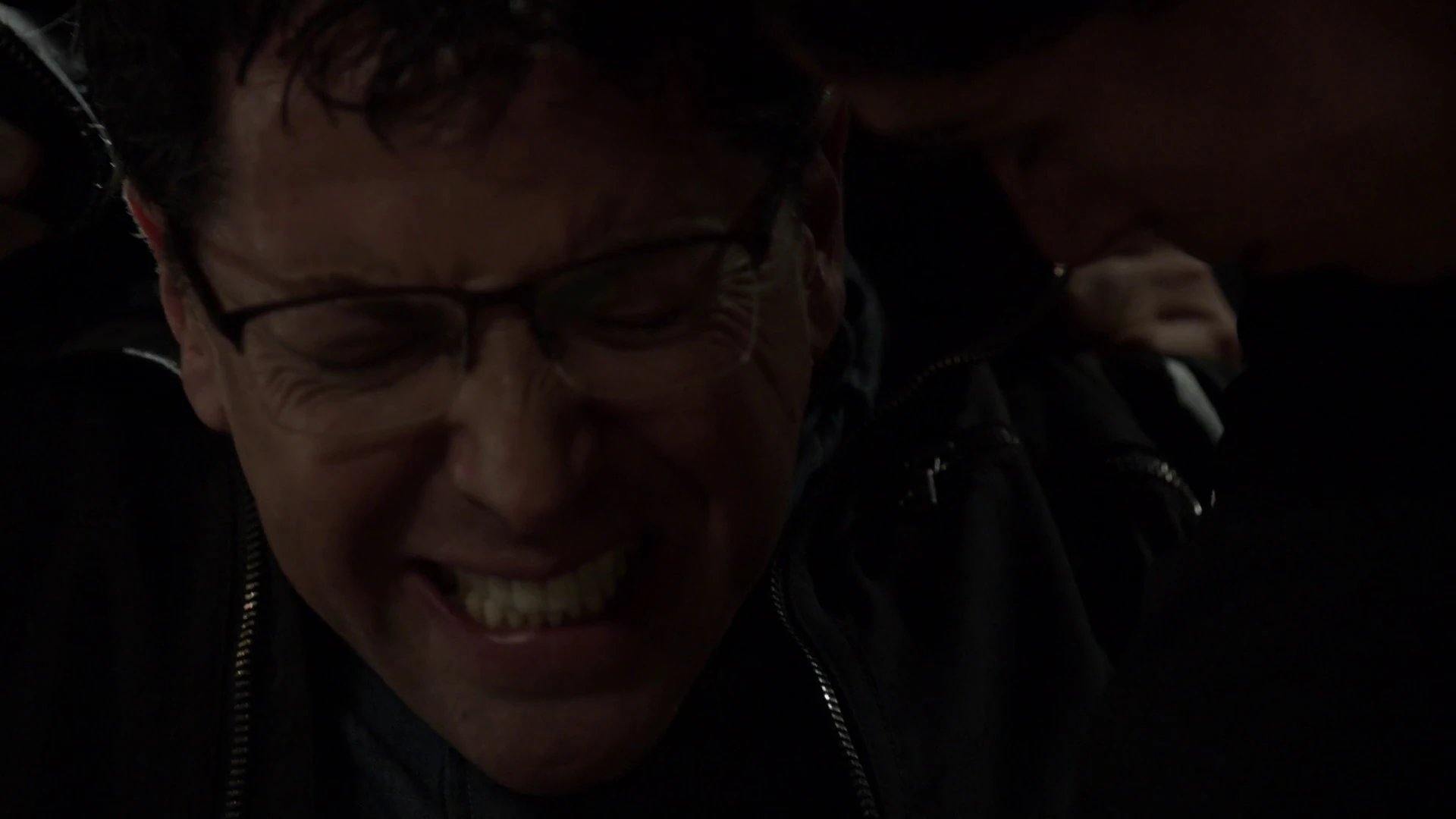 In the warehouse, Andy explains that he is running a four branch recovery on the drive. Carter notices a crate full of grenades, so jumps up and knocks his guard out of the way. He then throws himself back into his chair, smashing it, and pulls the pin out of a grenade. However, men swarm him and throw the grenade safely away, before beating him against a wall.