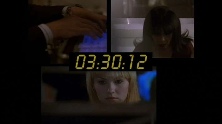 Split screen: Michelle watches over Alvers. Adam and Tony work from CTU. Jack watches as the incubator is carried away. The detonator continues to count down. Wayne & David discuss the virus in their office.