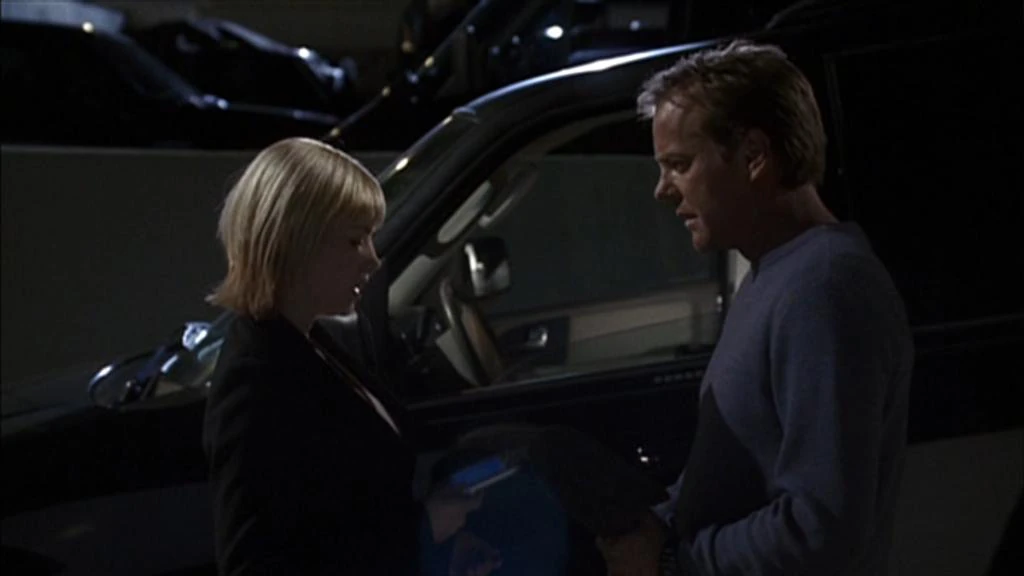 Jack is outside by a van, preparing to leave. Kim comes outside to tell him that they will have a man on the inside, Jim Wong. She gives him an update on the strike team, and Jack asks if she is okay. Kim says that she is and asks if Chappelle questioned him about the shooting. Jack says that he was questioned and told Chappelle that he wasn't sorry that Nina was dead or that he shot her. Kim asks if he had to do it, and Jack says yes. Jack hugs his daughter. Jack gets in the car to leave.