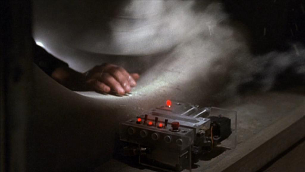 The British man that joined Michael Amador shows him and Alvers how to arm the detonating device. The vial is placed in the device, and when it is armed and the timer goes off, the glass vial shatters and the content of the vial is dispersed. The dispersal radius is one hundred meters.