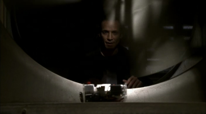 She gets him, but he tries to fight back. Michelle easily overpowers him. She asks him to put his hands on his head. He refuses. She knocks him in the head, then he agrees. She cuffs him to the pipe, and asks where the virus is. Holding him at gunpoint, she tells him that if the virus gets out, he dies, just like everyone else. He tells her its in the central ventilation unit. Michelle lets Gael know. He goes to find it.