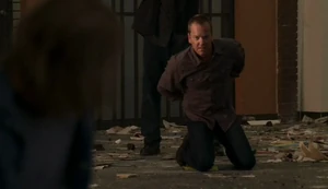 Beresch says Derek has five seconds to live. He starts counting down while pointing the gun at Derek. Finally, Jack walks in the terminal and surrenders himself. Beresch orders one of his men to cuff him and, as he puts Jack on his knees, he looks at Derek.