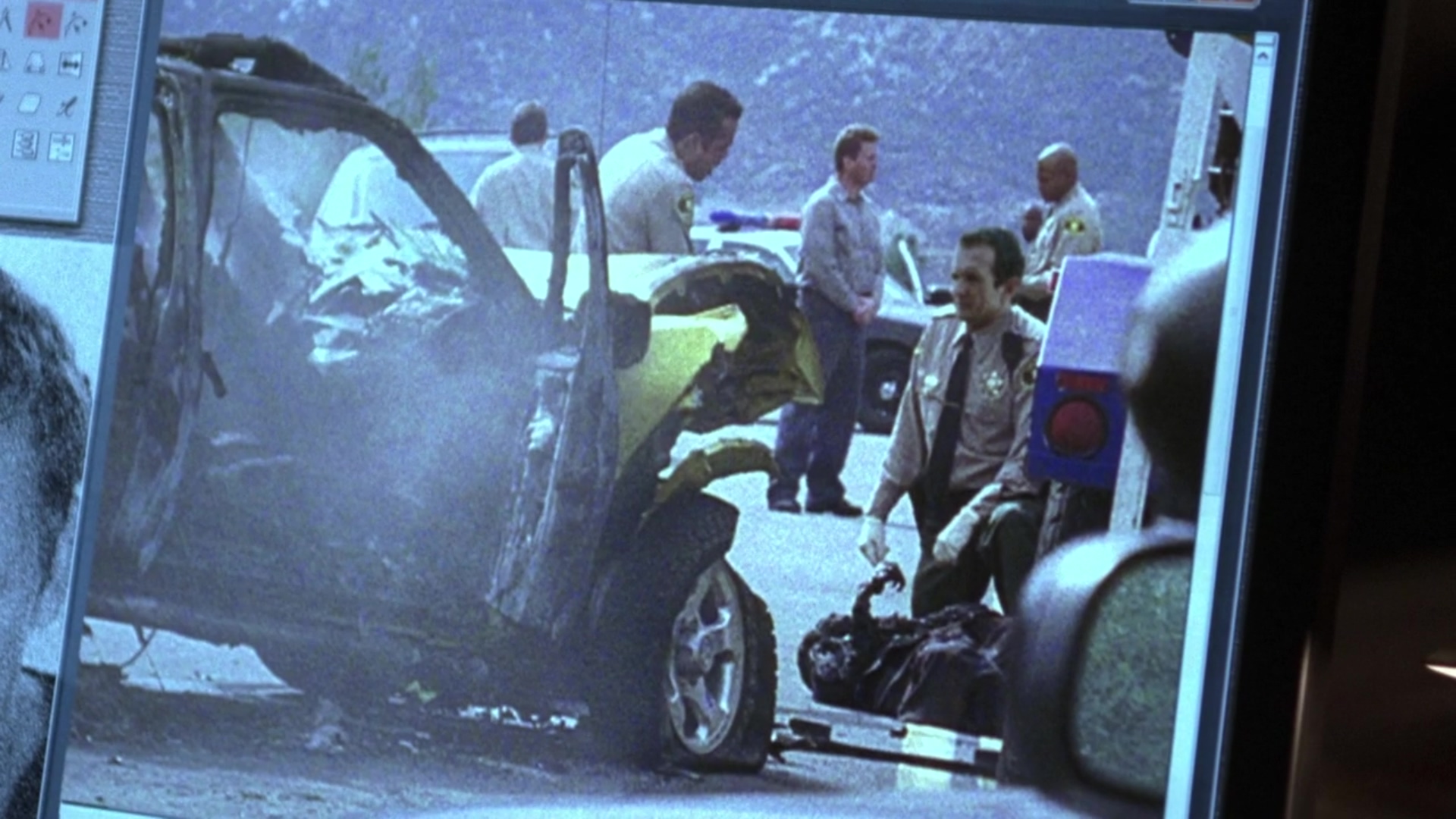 While running from the police, Jack spots a car with a laptop in it. He breaks in it and starts it. While driving away, he uses the laptop to examine the disc he took from the security cameras at the hospital.