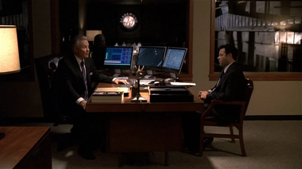 Jack Bauer talks with Sen. Blaine Mayer.