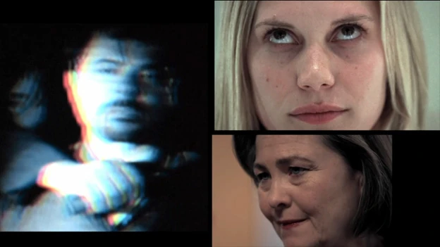 She keeps quiet. At that, Arlo leaves the room and Dana is sitting alone again. She finally smacks the table with her fists and puts her hands on her forehead.