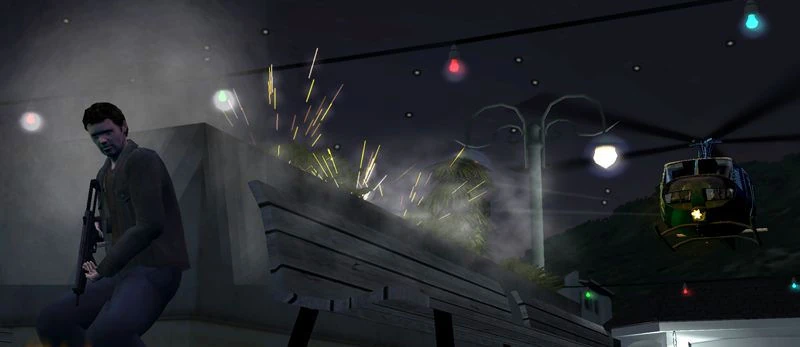As soon as Tony appeared, Kathy stepped into the light explaining that she works for James Radford and around two months ago she found an email dumped in the server trash that showed Radford was connected to terrorists. She gave him her keycard to prove it, but as soon as she did, the two hear the sound of an approaching chopper. Kathy was cut down instantly by a shooter on the chopper and killed. Tony dove for cover, shot at the helicopter and soon escaped from the pier.