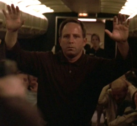 | This passenger, knowing only that Jack Bauer was an armed hijacker, attempted to rush Jack and disarm him. Jack saw the man coming and shouted for him to sit down, threatening him with his pistol. | ||