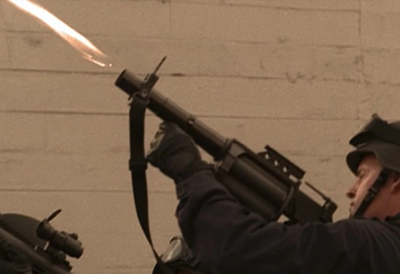 The Ramo RT-37 is a riot gun that launches 37mm caliber rounds such as smoke rounds, buckshot shells, or incendiary rounds. The weapon has a capacity of one round.