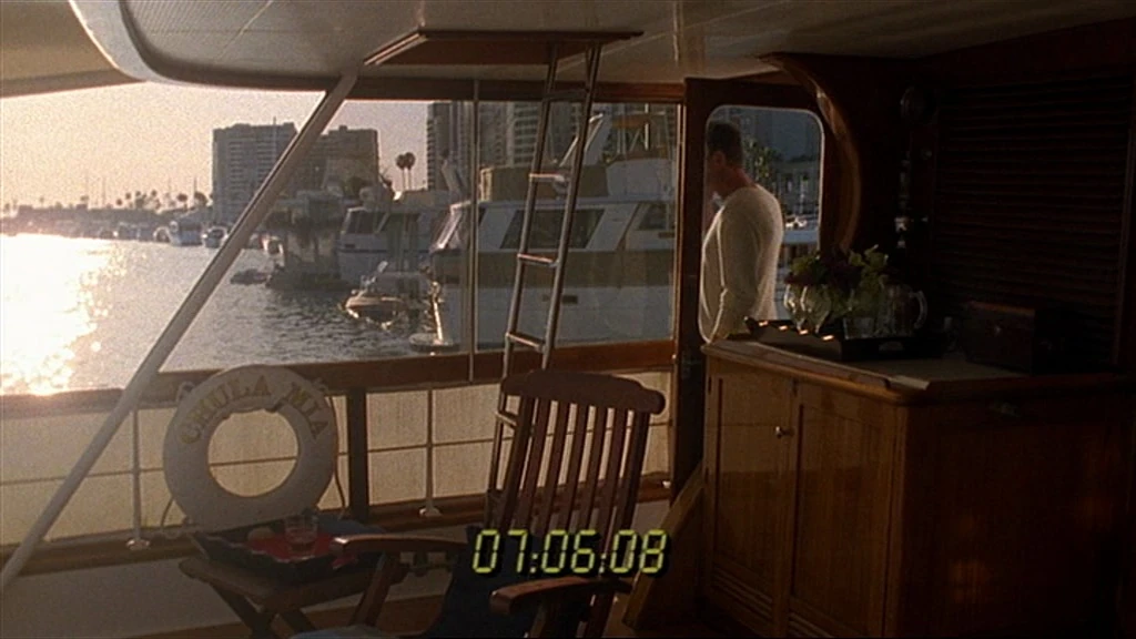 Again Max is seen on board the Chula Mia yacht in the Marina Del Rey, Santa Monica. The buildings on Admiralty Way can be seen in the background. Later in the episode, the yacht drives south out of the marina.