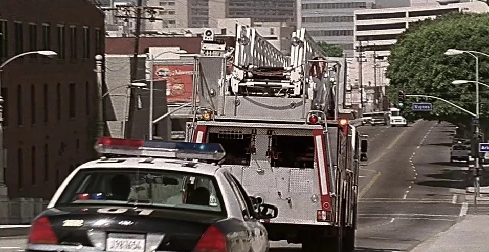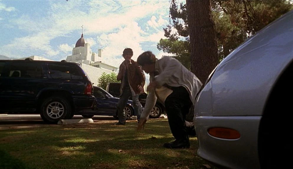 A shot of Jack and Sherry driving to the coliseum shows their car driving south on Canoga Avenue and over the bridge right next to where their car crashed.