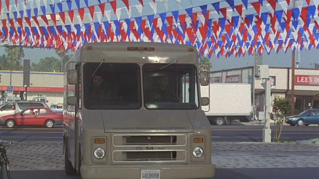 In the final part of the episode, Eddie Grant's van is seen driving west on Sherman Way past the repair garage and the pylons opposite.