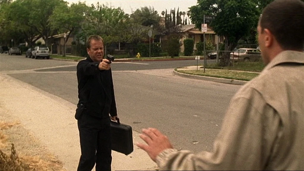 The scene at the clearing where Jack Bauer takes out Eddie, Chris and Scott was filmed round the corner from where the phone switching station was last episode, in Griffith Park. The clearing is up the hill from Vista Del Valle Drive.
