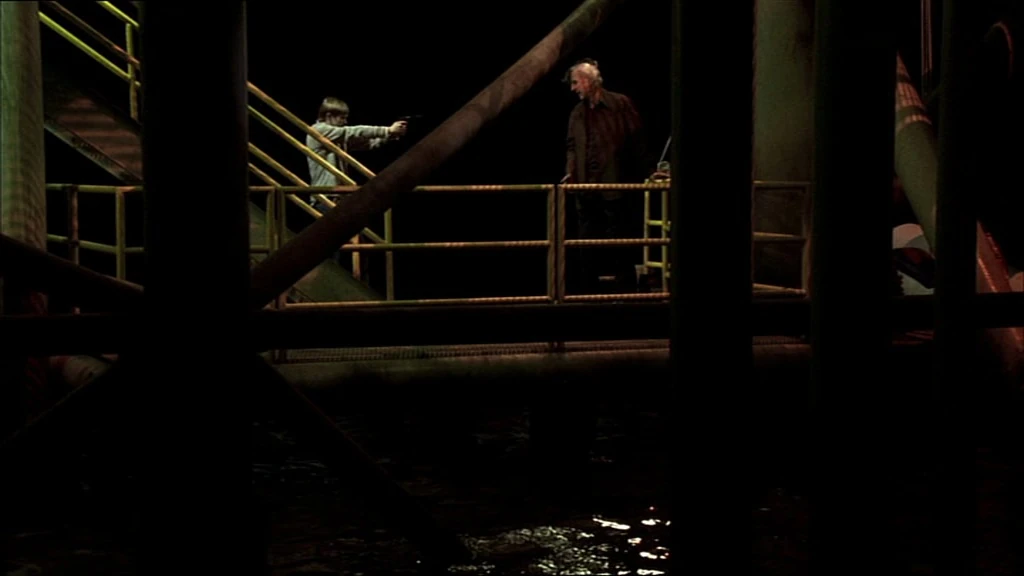 The wide shots of the oil rig were again filmed at Platform Houchin offshore facility in the Carpinteria Offshore Oil Field.