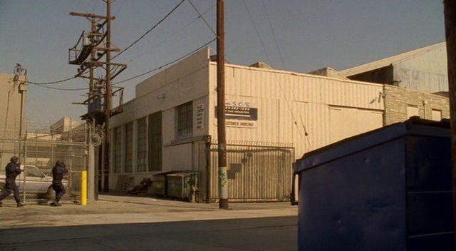Again the scenes at the warehouse were filmed at the factory in Vernon. Jack calls Cheng in an alley running through the building, and climbs up one of the metal structures in the alley.