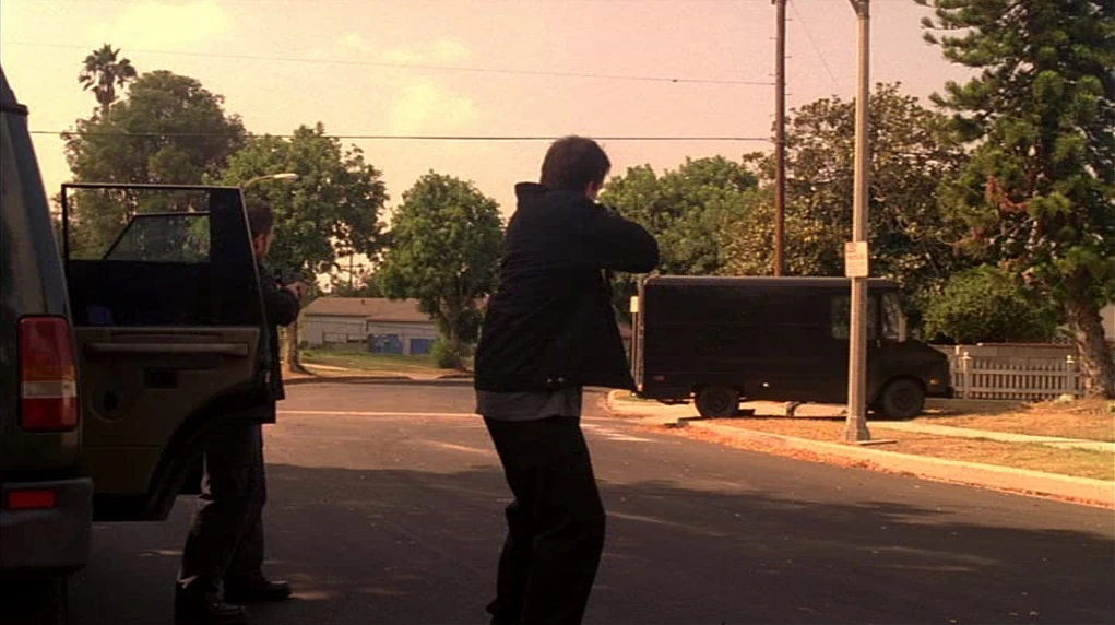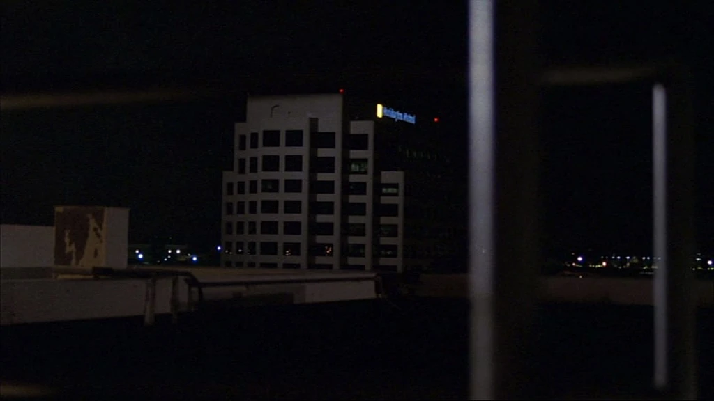 When Jack arrives outside of Hamri Al-Assad's building in Inglewood, he parks outside of 5410 West 99th Street in Westchester (very near to Inglewood). He exits his car and runs south through two houses, but in the next shot he is running past a building north of where he parked. He sneaks into Assad's building, which was at 5401 West 99th Street. However, this building and most of the others surrounding it have all since been demolished.