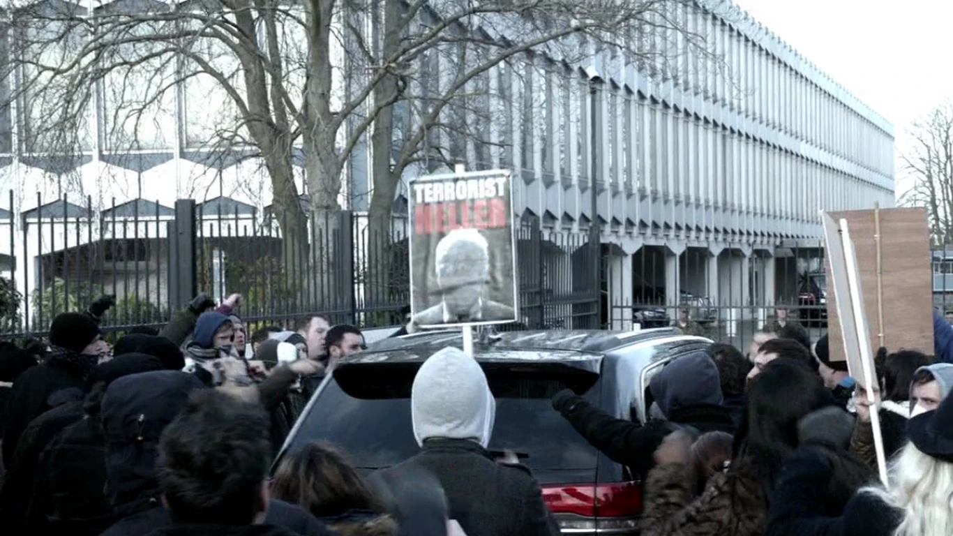 After Lieutenant Chris Tanner was framed for Derrick Yates drone attack, he was taken here to be questioned. With the help of Adrian Cross and Open Cell, Jack Bauer tried to infiltrate the Embassy as a member of the Diplomatic Security Service to find Tanner's flight key and proof of the hacking. However, Cross betrayed Bauer and he had to create a riot amongst anti-drone protestors to escape into the Embassy. ("Day 9: 1:00pm-2:00pm")