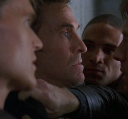 In a scene that was originally intended to be the introduction of Raymond O'Hara and his men Trask and Davis, they murder a security guard who approaches them on account of their suspicious appearance and behavior outside Dr. Spire's clinic. At first, O'Hara ignores the man and his questions until he gets close, and then abruptly murders him with a sound-suppressed pistol. The three quickly dump the guard's body partially underneath a vehicle's rear bumper and walk off.