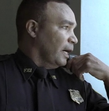 This cop was stationed at the parking entrance booth of the Metro PD station where Eric Carter was taken. Officers Paul Vernon and Tim Bates drove past the entrance as he let them in.