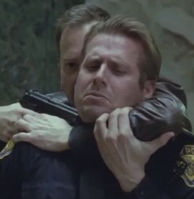 This officer arrived with his partner Burtt at First Unity Savings Bank after a 9-1-1 call placed Jack Bauer at the scene. After spotting him there, he and his partner proceeded to arrest him. While his partner notified his superiors, Jack took advantage of his distraction and managed to grab him. Jack then asked his partner to drop his gun or he'll killed him if his partner didn't do that. After his partner put his gun down, Jack shot his partner on one foot and knocked him unconscious.