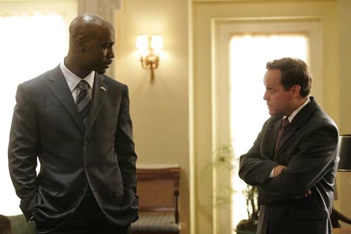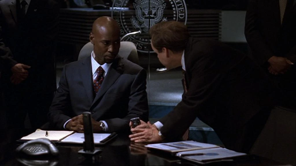 President Wayne Palmer confers with Chief of Staff Tom Lennox.