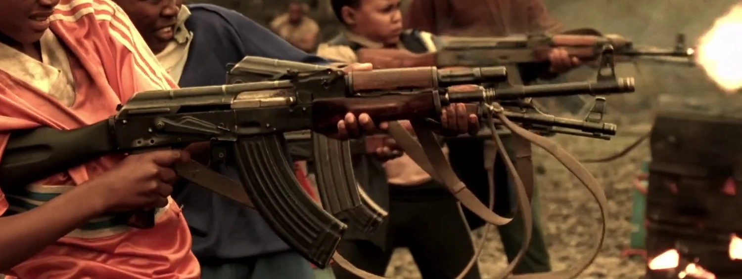 Redemption | During the abduction of the children playing soccer, three of the soldiers carried AK rifles. One of them later arrived at the Okavango School still carrying the rifle. |