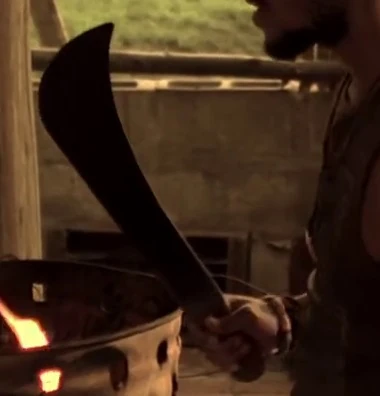Redemption | Iké Dubaku had a machete when training the children to become soldiers at his camp. He gave the weapon to Kabila, asking him if it felt good, then had him kill a prisoner with the blade. |