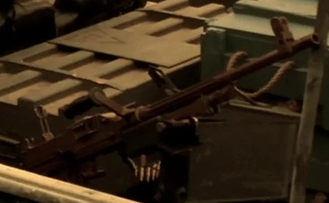 Redemption | There was an FN MAG 58 machine gun on a pile of boxes at Iké Dubaku's camp. |