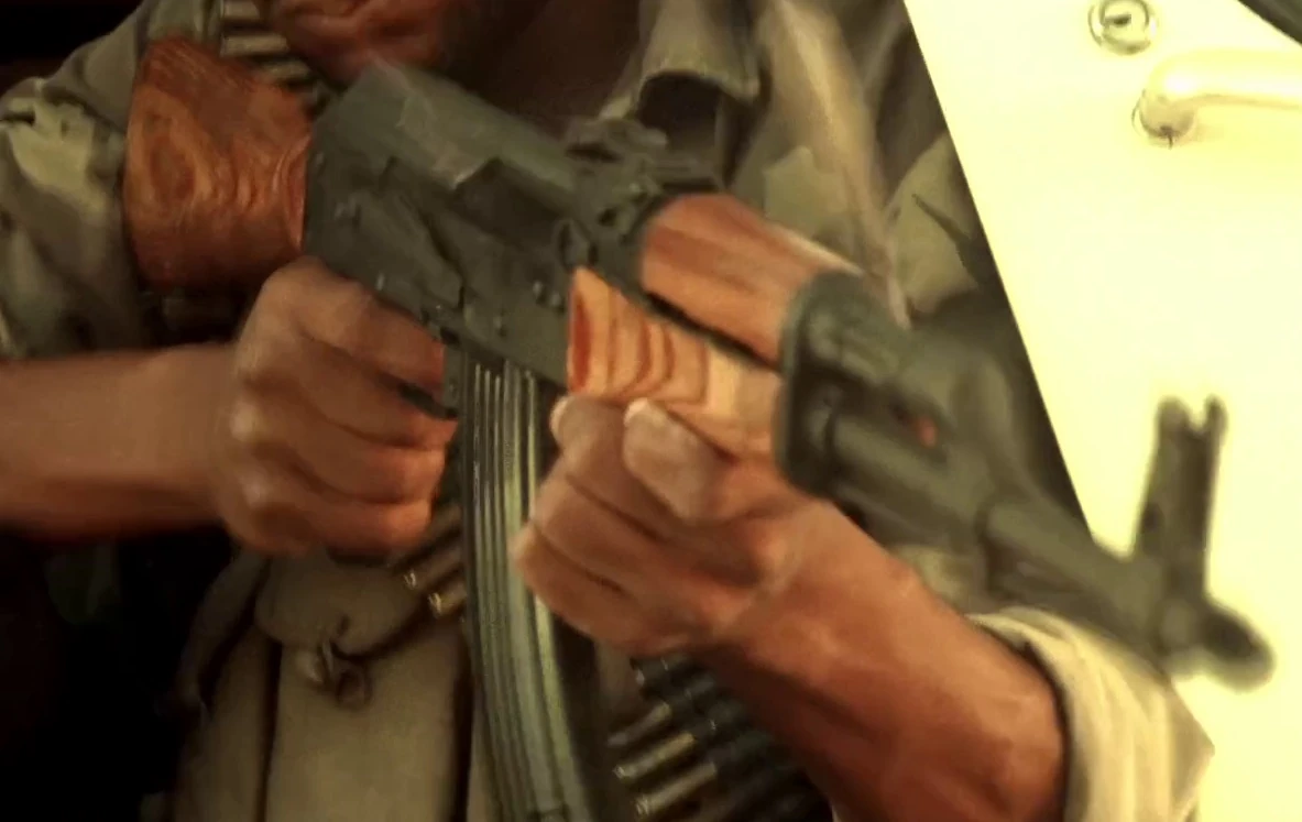 Redemption | A gunner in Iké Dubaku's helicopter fired on Jack and the children with an AKM rifle. |