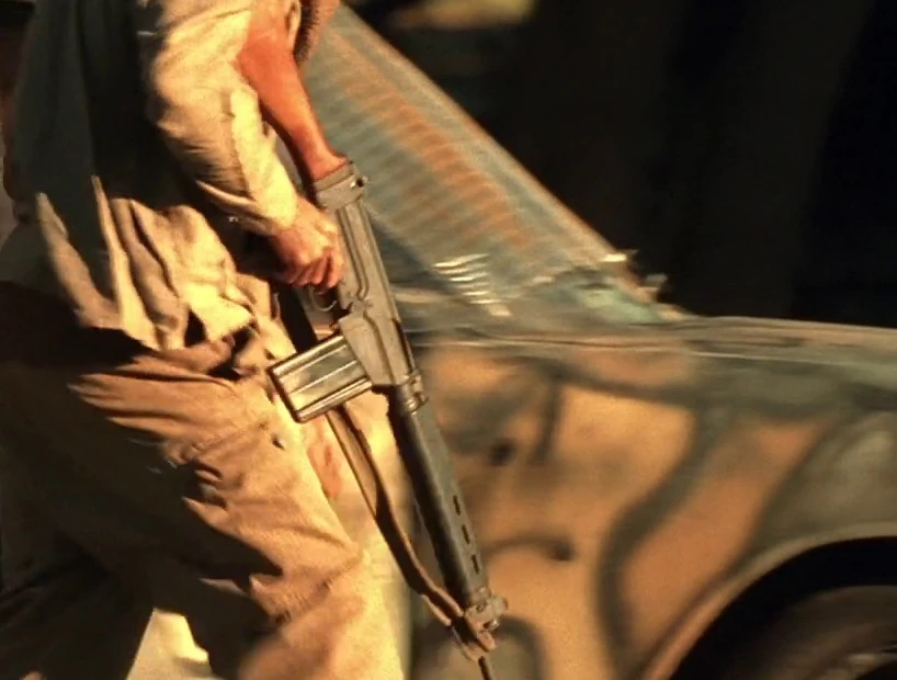 Redemption | During the abduction of the children playing soccer, one of the soldiers carried an HK G3 rifle. |