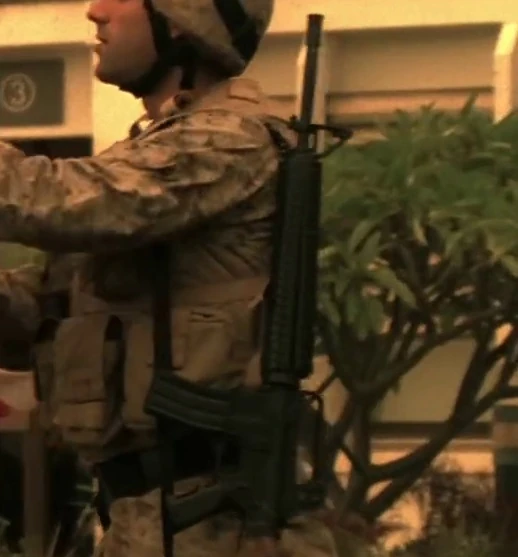 Redemption | Marine guards at the US embassy in Sangala were armed with M16 and M16 carbine rifles. |