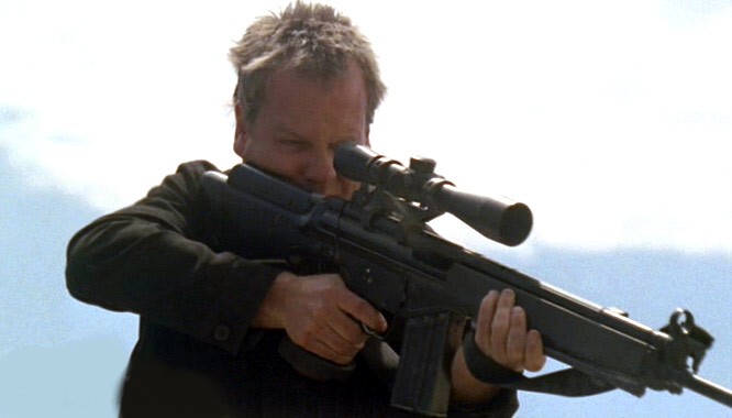 "5:00pm-6:00pm" | A CTU sniper shot Nina Myers with an Remington 700 mounted on the Accuracy International Chassis System. He later scoped out the hills around the area to make sure all the hostiles were neutralized. |