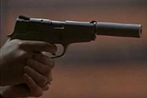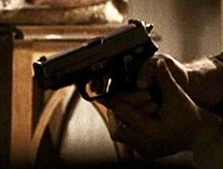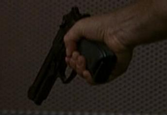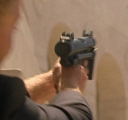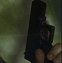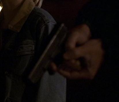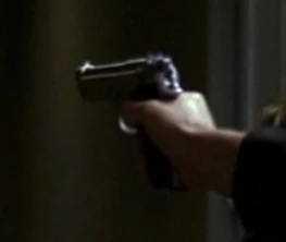 When Gary Matheson killed a Deputy sheriff at 12 Blue Tree Drive, he took his utility belt and retrieved a Beretta 92 from it. He drew the weapon to shoot at Kim Bauer, but she knocked him out and took it from him. She then shot him twice with it (when she fired it, a flashpaper non-gun was used - note how the end of the barrel doesn't match up to the rest). She then pointed it at Kate Warner when Kate arrived to collect her. |