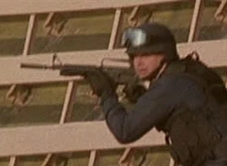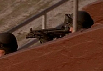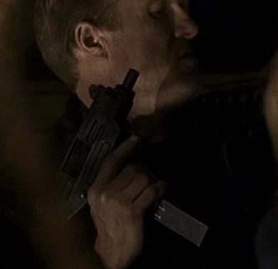 A terrorist guarding the warehouse at Panorama City carried an IMI Uzi, using it to shoot at George Mason and Barber. He killed Barber and smashed the glass containing lethal levels of plutonium, which Mason was exposed to. |