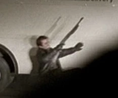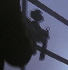 "1:00am-2:00am" | In the first part of the warehouse shootout, 2 men were firing Micro Uzis - a bald man on some fire escape steps, and another man (pictured) who was on a fire escape at the opposite end of the alley. Neither were seen to be killed. |