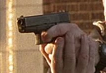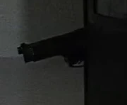 Tom Baker carried a Glock during the raid on 18 Starling Court. He later had it while entering the Mosque. |