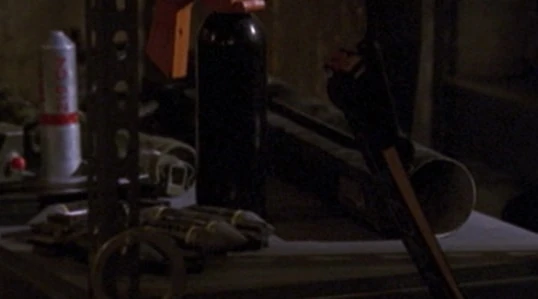 "8:00pm-9:00pm" | A TD Multi-Port Plus flashbang grenade was seen behind some grenades on a shelf in Lonnie McRae's bomb shelter, which spooked Kim Bauer. |