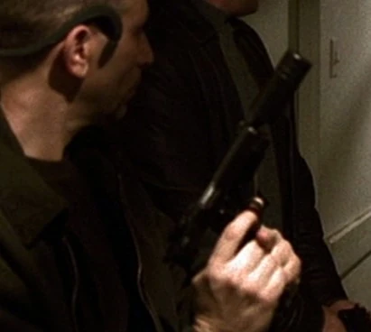 "12:00am-1:00am" | Wallace's accomplice carried a Beretta 92 which he threatened Kate Warner with, before being knocked out by Yusuf Auda. |